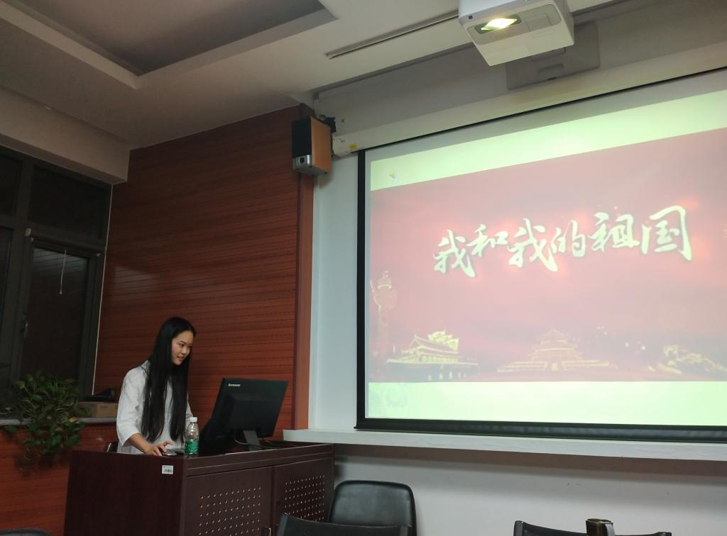 党支部书记王卓首先组织与会党员和入党积极分子观看了《建国大业》纪录片,通过纪录片追忆老一辈无产阶级革命家的丰功伟绩。王卓总结道,作为新时代的党员,我们更应当在以习近平主席为核心的党中央坚强领导下建设新时代中国特色社会主义的历史机遇中,思考个人、国家与党的关系问题。无论从历史还是从现实来看,没有共产党就没有新中国,只有共产党才能救中国、建设中国、发展中国,实现中华民族的伟大复兴,使中华民族自立于世界之林。