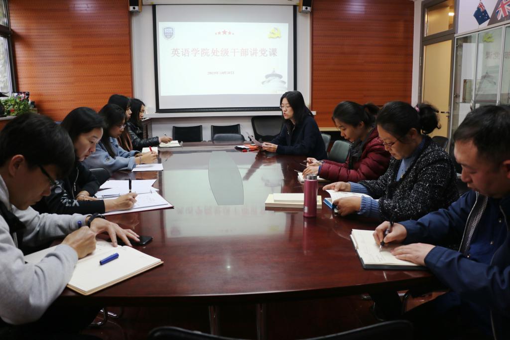 10月30日下午,pg国际电子网站教职工行政党支部在英语楼115会议室开展“处级干部讲党课”活动。学院行政支部全体党员、发展对象和入党积极分子参加并聆听党总支书记路兴和党总支副书记孟庆琨“不忘初心,牢记使命”主题教育专题党课。