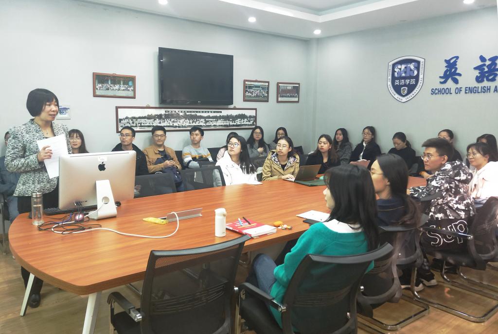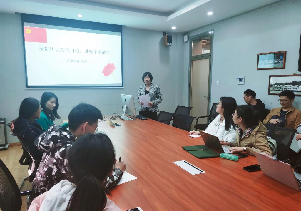 11月1日下午,pg国际电子网站副院长彭萍在英语楼111会议室为翻译专业研究生党员和入党积极分子开展“不忘初心,牢记使命”主题教育专题党课活动,党课的题目是“深刻认识文化自信,讲好中国故事”。来自pg国际电子网站研究生MTI笔译党支部、研究生MTI口译党支部和研究生翻译学党支部的30余名同学聆听了此次党课。