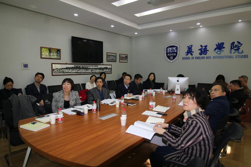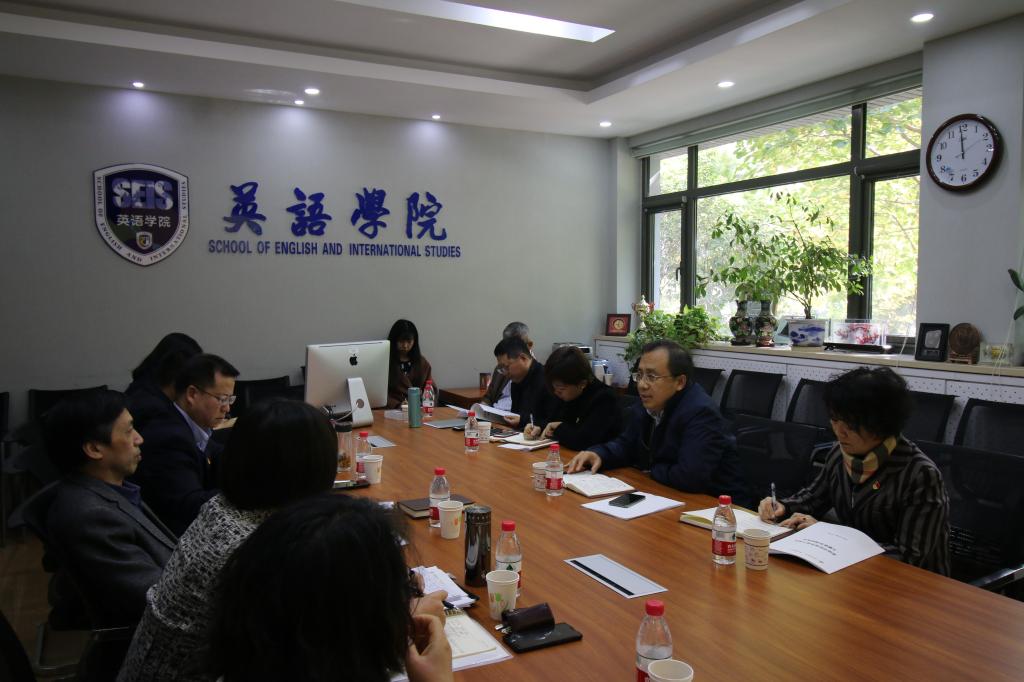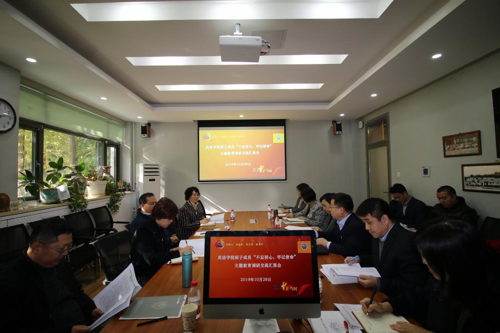 10月28日上午,pg国际电子网站召开班子成员“不忘初心,牢记使命”主题教育调研交流汇报会。北京外国语大学副校长贾德忠,学校主题教育领导小组办公室评估督导组成员、后勤党总支书记潘华珍,党、校办滕岑进行指导。pg国际电子网站班子全体成员、院长助理、系主任、本科生教研室主任、研究中心主任及青年教师代表参加交流汇报会。