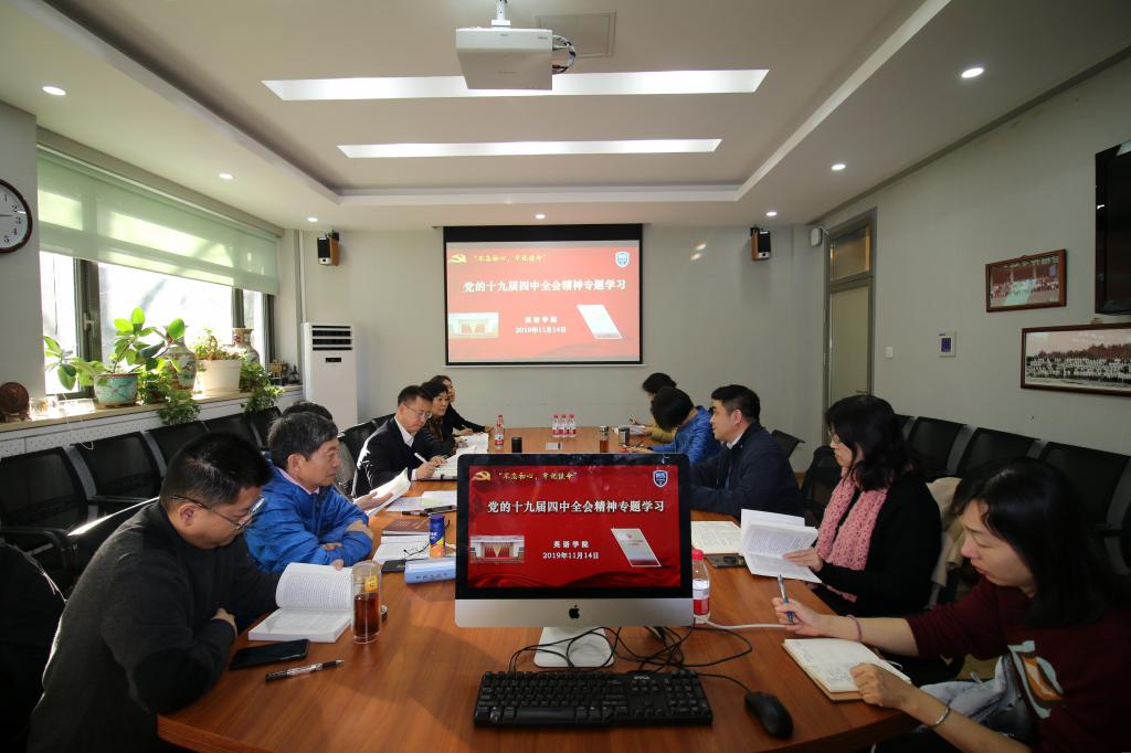 11月14日下午,pg国际电子网站理论中心组召开党的十九届四中全会精神专题学习讨论会,交流分享学习党的十九届四中全会精神的认识和体会。学院班子全体成员、党总支委员和教工党支部书记参加学习研讨。会议由党总支书记路兴主持。参会人员会前结合实际研读了学校党委下发的《党的十九届四中全会<决定>学习辅导百问》。