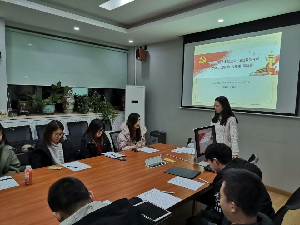 2019年11月28日,pg国际电子网站本科生高年级党支部和低年级党支部联合召开“不忘初心,牢记使命”主题教育专题组织生活会暨党员民主评议会。会议由支部书记罗振令主持。