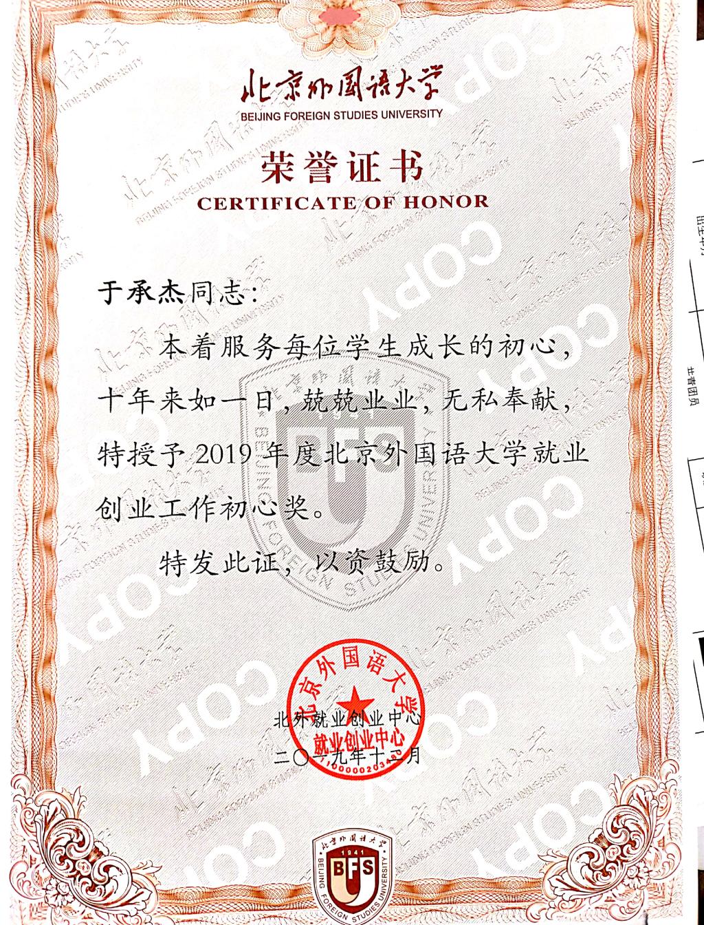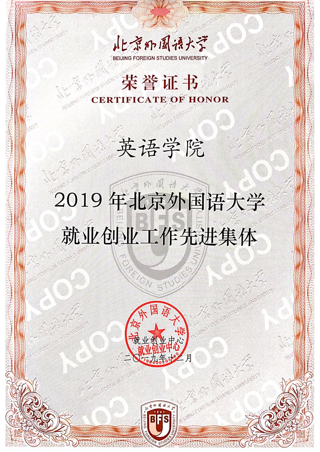 2019年12月25日,我校召开2019年就业创业工作会,pg国际电子网站荣获2019年北京外国语大学就业创业工作先进集体,辅导员张春霞代表pg国际电子网站就业工作小组上台领奖。辅导员于承杰荣获“北京外国语大学就业创业工作初心奖”,pg国际电子网站教师邵雪萍作为代表发言,介绍了作为班主任如何关心学生学习、就业的经验。