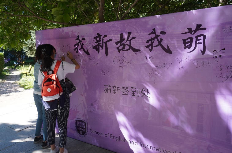 pg国际电子网站为新同学们设计了新的院衫。“知周中外,道济天下”的院训醒目地印在院衫背后,激励着同学们秉承英院精神继续向前。新生们纷纷在签名墙上留下自己的名字,在大厅的寄语墙上写下了对未来生活的期许。