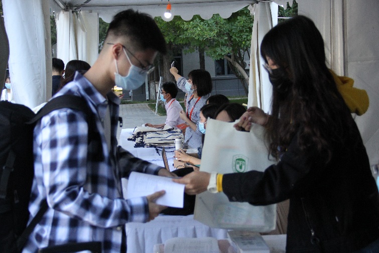 在主楼迎新处,新生们在志愿者的引导下进行了迎新注册码的验证工作,领取北外专属一卡通及新生大礼包。在pg国际电子网站,学生会工作人员仔细清点新生所提交的档案材料,努力将每一个细节落到实处。