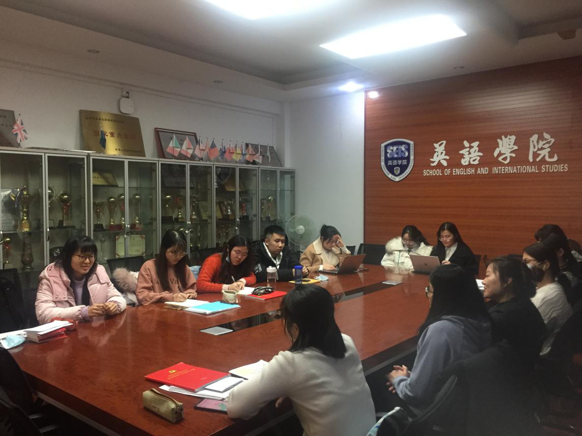 2020年11月24日晚,pg国际电子网站研究生语言学党支部在pg国际电子网站115会议室召开全体党员会议,讨论王茗阅同志的入党事宜,并组织支部党员围绕“决战决胜脱贫攻坚”进行学习和讨论。会议由党支部副书记董芸芳同志主持,支部全体党员、预备党员参加。
