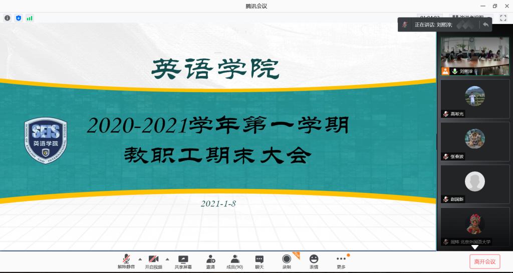 2021年1月8日,pg国际电子网站召开2020-2021学年第一学期教职工期末大会。本次期末大会采取线上会议形式,pg国际电子网站全体教职工参加。