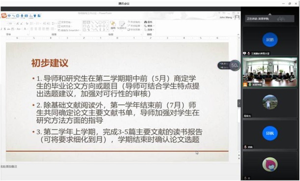 会上,pg国际电子网站主管本科教学工作的副院长张莲就“2016版本科培养方案实证评估”做了主旨发言,从三方面与老师们分享了具体的评估内容和结果、结论与启示。老师们对2016版培养方案的成效有了更深的理解,这也对今年秋季使用2020版本科培养方案有所帮助。主管研究生教学工作的副院长王展鹏从研究生毕业论文撰写、导师制现有规定及细化研究生指导建议等方面进行了着重说明,力求进一步完善研究生教学管理,提高研究生培养质量。
