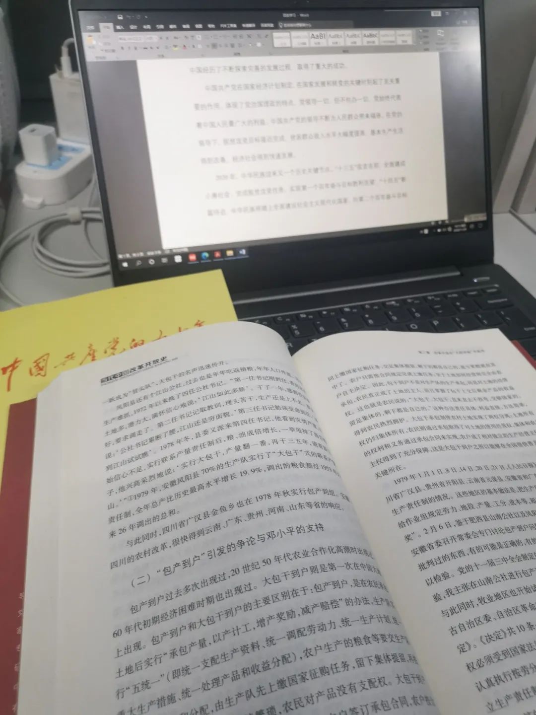 组织读书分享会和党史讲座:为了让同学们在历史中生动地获取更多信息,1906班团支部书记从历史教育的角度出发,分别组织了读书分享会和党史讲座两项活动。读书分享会中,同学们共同研读了由中共中央党史研究室编著的《中国共产党的九十年》和曹普教授的《当代中国改革开放史》,了解到了党在历史上取得的重大成就。党史讲座上,同学们观看了“名师大家讲党史”系列课程的第五讲直播,对党在新中国成立以来领导人民进行建设与改革、实现中华民族伟大复兴的历史有了更为深刻的了解。
