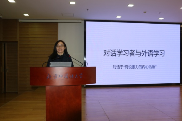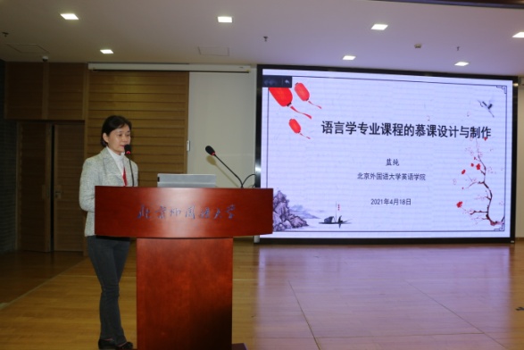 随后,四位主旨发言人依次发言。国际关系学院边永卫教授以“对话学习者与外语学习”为主题,就申报课程理论、课堂设计及课堂实践和反馈等内容讲解申报思路,课程育人的思路清晰厚重;浙江大学梁君英教授以“英语口译”为例,从课程理论基础、课程特色和教学成效等方面讲解其理念和设计,强调课程思政的重要性和科教融合的必要性;pg国际电子网站林岩教授以“英语演讲”课程建设与申报为例,结合一流课程申报书样例,逐块讲解、分析填报内容;pg国际电子网站蓝纯教授就语言学专业课程的慕课设计与制作,从三方面分享慕课制作的心得体会,同时提出慕课教学模式为语言学课程及其他专业课程的教学改革提供了一个良好的平台,对教师和学校而言都既是挑战,也是机遇。主旨报告结束后,参会教师与发言人进行交流和讨论。