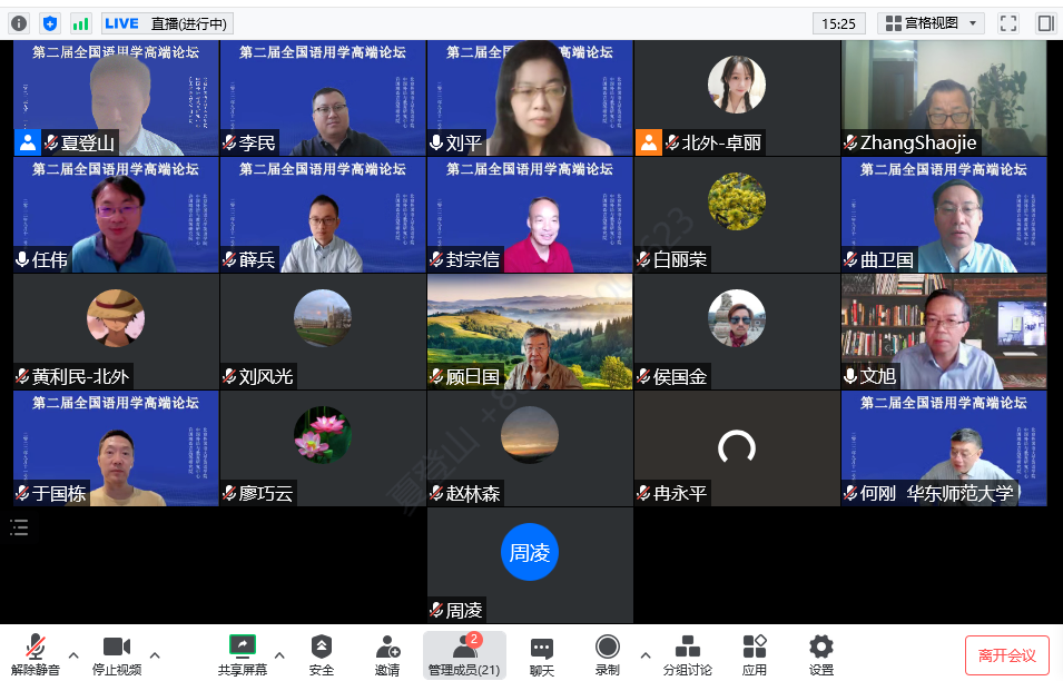 2022年9月11日至12日,pg国际电子网站、中国外语与教育研究中心和许国璋语言高等研究院联合召开了“第二届全国语用学高端论坛”。本次论坛由北京外国语大学黄教授召集,pg国际电子网站夏登山教授组织,共邀请了28名全国语用学界知名学者在线上进行深度交流,主题包括会话蕴涵、言语行为、(不)礼貌研究、实验语用学、语用—语义界面研究等语用学经典论题及当前的热点话题,力图反映当前中国语用学研究的最高水平。