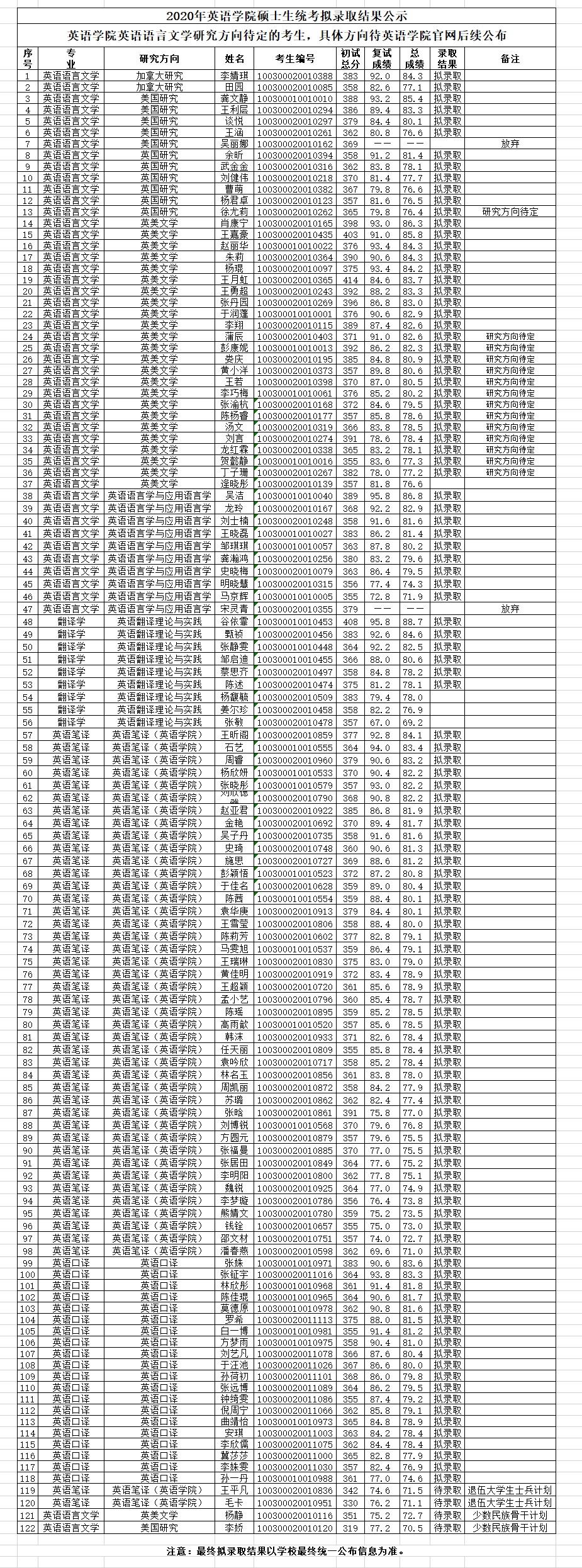 2020年pg国际电子网站硕士生统考拟录取结果公示