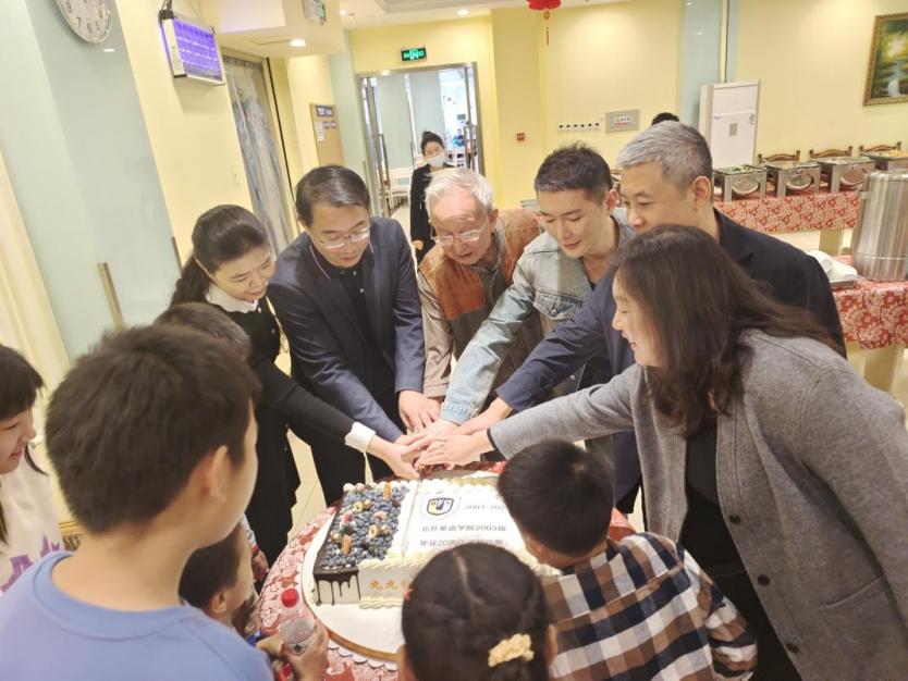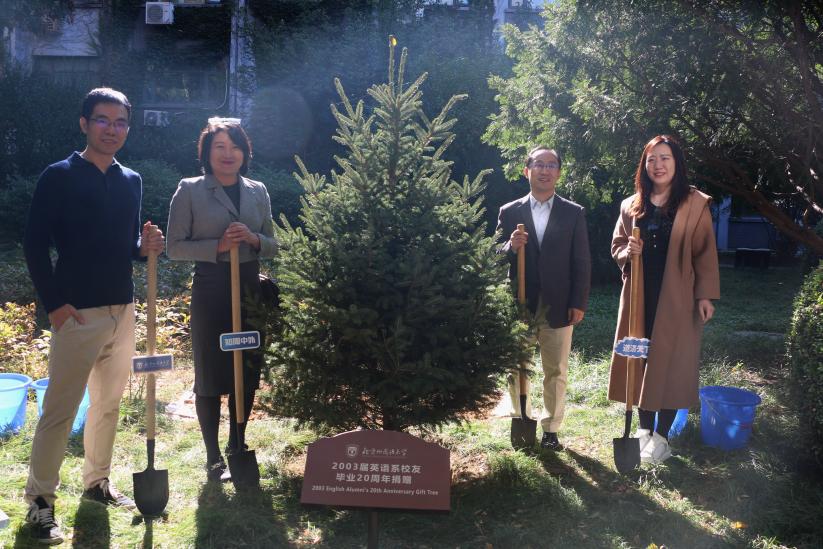 2003届校友向学校捐赠云杉树作为纪念,四名校友代表共同挥锹培土浇灌,祝愿北外事业常青,学校发展步步高。随后大家参观了伊莎白纪念展。最后校领导、教师以及校友们在教工餐厅一同分享了制作精美的纪念蛋糕。